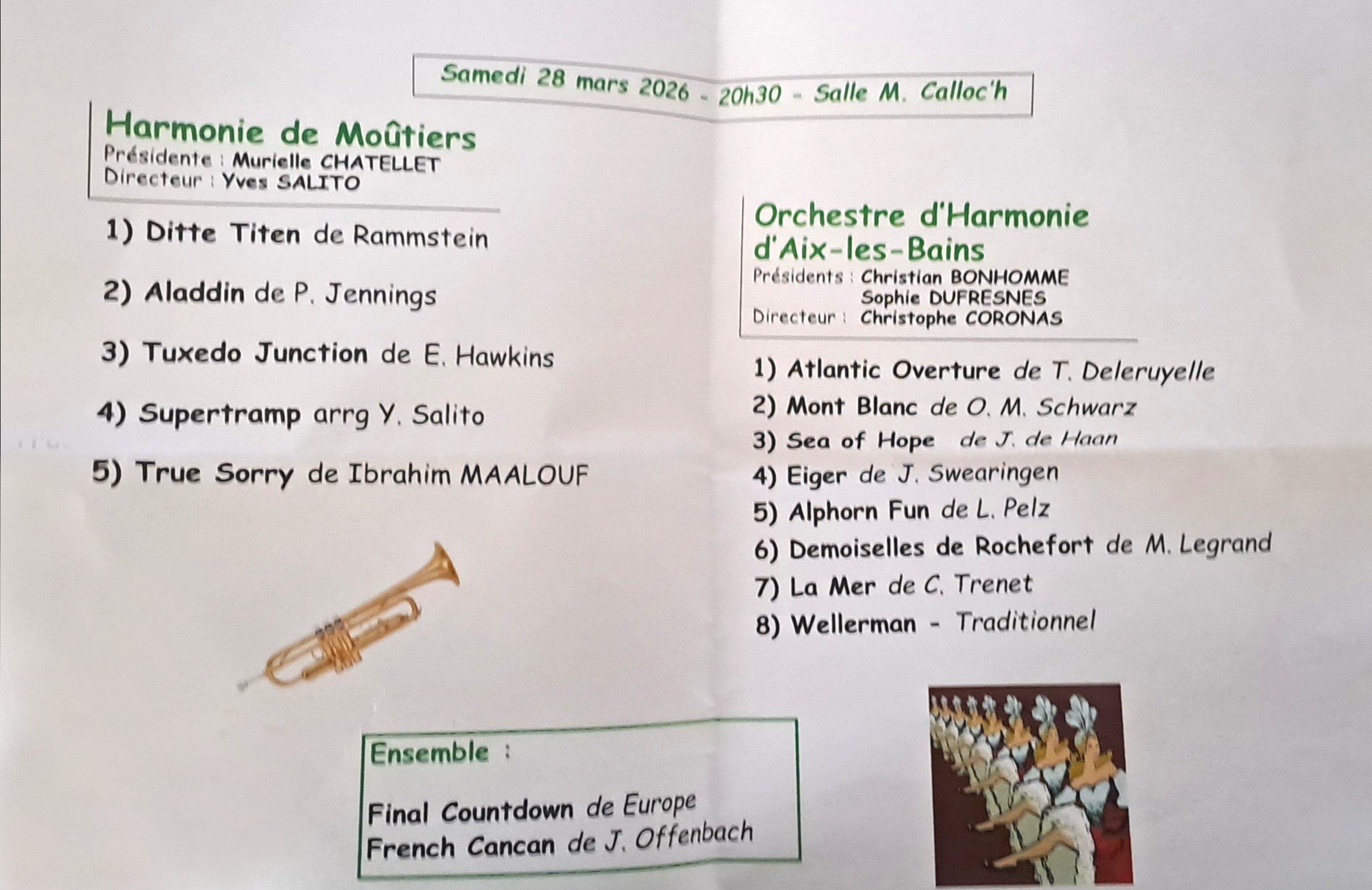 L'harmonie de Moûtiers invite l'orchestre d'Harmonie d'Aix les bains pour son Concert de printemps 2026